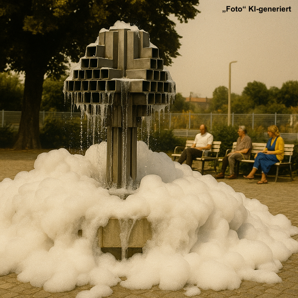 Ob das nun ein Protest gegen den planmäßigen Wasserkreislauf war oder einfach nur jugendlicher Übermut mit Haushaltserfahrung – wer weiß das schon. Sicher ist: Das fiktive Bild WÄRE (Siehe Bild 3!) legendär – Denn so könnte es ausgesehen haben. Ein ganzer Platz voller Schaum. Der Brunnen, völlig außer Rand und Band. Und irgendjemand stand bestimmt mit einem Lappen daneben und hat gesagt: „Na siehste, glänzt doch!“